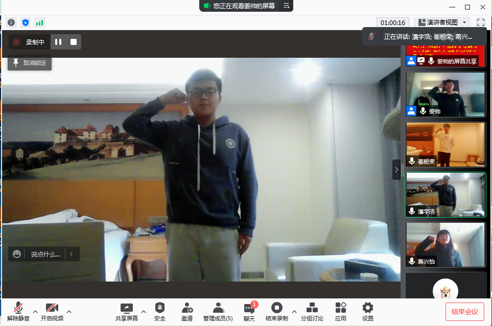 随后,临时党支部全体党员结合习近平主席新年贺词和伟大抗疫精神分享了自己的学习感受,大家纷纷表达了对党和国家、对全体抗疫人员的感激之情,表示解除隔离后要积极投身抗疫一线,贡献自己的一份力量。