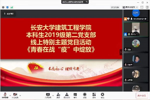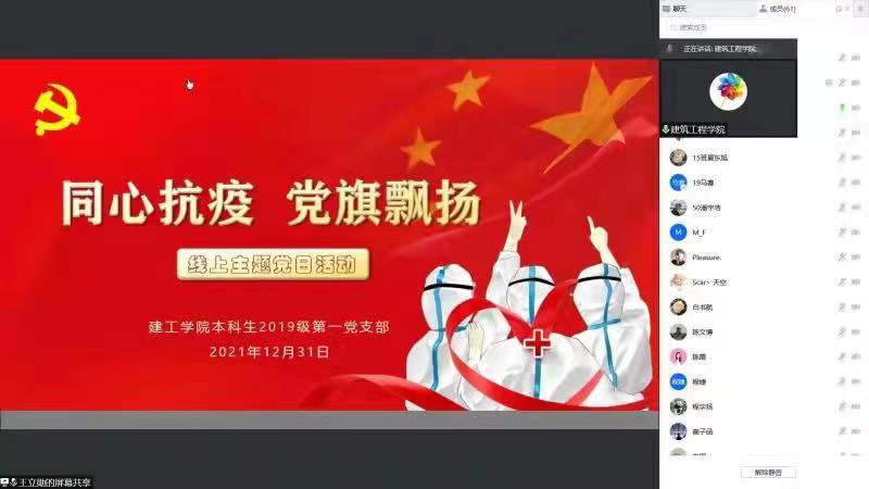 疫情期间,支部对党员和积极分子的培养也并未松懈。2021年12月31日,2019级第一党支部开展“同心抗疫,党旗飘扬”线上主题党日活动,共同收看国家主席习近平的新年贺词,回顾这一年来的付出与收获,共同学习伟大抗疫精神,从抗疫斗争中凝聚精神力量,思政班主任陈英分享巴黎人娱乐城 教职工志愿者抗疫背后的故事,彰显同舟共济、守望相助的家国情怀。1月1日,2019级第二党支部开展“青春在战疫中绽放”线上特别主题党日活动,深入学习贯彻习近平总书记关于疫情防控工作的重要指示精神,赵玺、王牧佳、唐柯靖等党员志愿者分享志愿服务体会与感悟,志愿者贾说,“作为一名学生党员,第一时间响应号召,投入抗疫一线,我感到非常荣耀”。通过特别主题党日活动,提升了支部党员的凝聚力,增强了全体党员打赢疫情防控阻击战的信心。