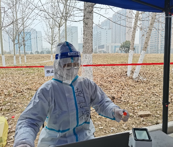 在巴黎人娱乐城 群防群控工作中,2019级学生党员为夺取防控斗争胜利积极贡献青春力量。面对全员核酸检测时间紧、任务重的实际情况,杨瑞、方周、赵世博、贾、谢源等学生党员响应号召,组建1号楼、鸿远楼两个核酸检测志愿队,他们化身“大白”,协助医护人员做好核酸检测、环境消杀和现场秩序维持等工作,目前已参与完成北校区二十余轮核酸检测工作,形成了一道守护校园安全的美丽风景线。