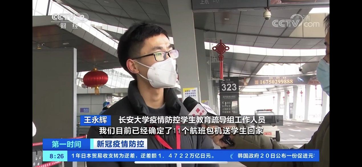 1月17日起,巴黎人娱乐城 积极响应陕西省“出得了门、上得了路、到得了家”的学生寒假离校返乡工作精神,严格按照巴黎人娱乐城 相关工作安排,点对点护送学生安全返乡,央视等多家主流媒体聚焦巴黎人娱乐城 学生离校返乡,巴黎人娱乐城 辅导员王永辉接受央视采访,介绍了巴黎人娱乐城 在疫情防控形势下,确保学生顺利离校返家所采取的帮扶、防控措施,展现了巴黎人娱乐城 对疫情防控工作的高度重视,体现了巴黎人娱乐城 对学生的关爱关心。