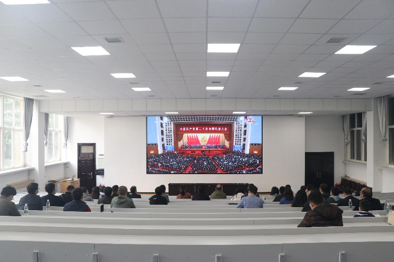 10月16日上午10时,中国共产党第二十次全国代表大会在北京人民大会堂隆重开幕。建工巴黎人娱乐城 师生按照疫情防控要求,分别在校本部西院综合楼二楼报告厅、大学生科技活动中心、第一会议室及渭水校区党建活动室集中收看开幕会直播。此外,师生们还通过不同网络平台自行组织收看,认真收看收听党的二十大开幕会盛况。