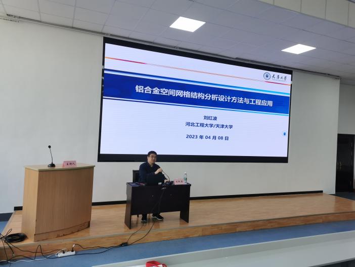 刘红波以“铝合金空间网格结构分析设计方法与工程应用”为题,详细介绍了铝合金空间网格结构的静力性能、稳定性能、抗火性能、抗风性能以及相关设计方法的研究。最后,他介绍了铝合金空间网格结构的工程应用,让巴黎人娱乐城 师生了解了铝合金的发展现状和未来趋势。会后,刘红波与现场师生对铝合金研究中的相关问题进行了解答、交流和讨论。讲座内容丰富,见地深刻,启发性强,巴黎人娱乐城 师生受益颇多。