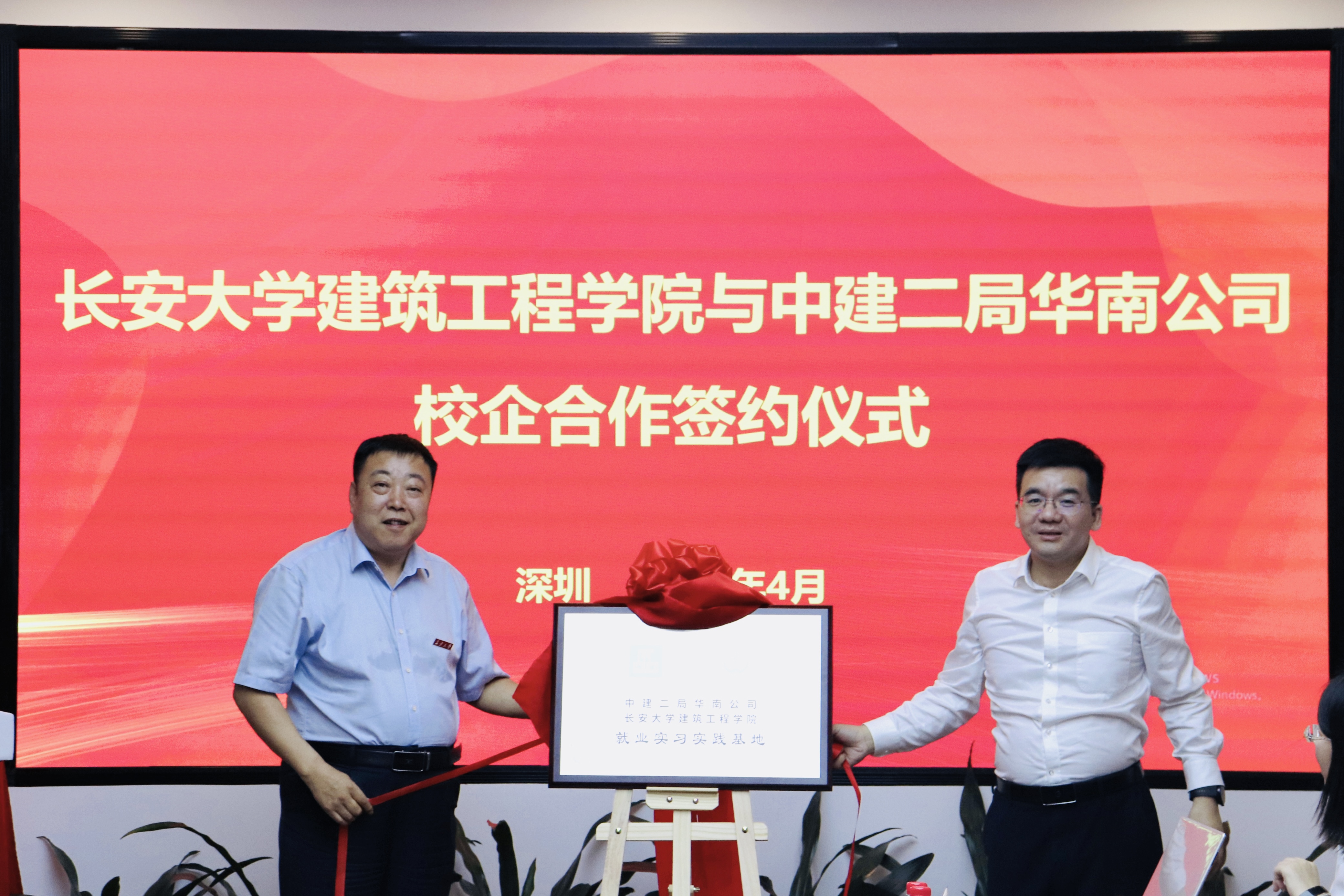 4月12日,巴黎人娱乐城 一行到访中建二局华南公司。公司党委副书记、工会主席罗资奇对建工巴黎人娱乐城 长期为公司输送优秀人才表示感谢,希望校企双方继续加强在人才培养、科学研究、学生实习等方面的合作交流。人力资源部经理郭建伟就人才需求情况和就业优惠政策等方面进行了说明。双方共同签订了校企合作意向协议,并为就业实习实践基地揭牌。中建二局华南公司深圳分公司领导、长安大学部分优秀校友参加座谈。