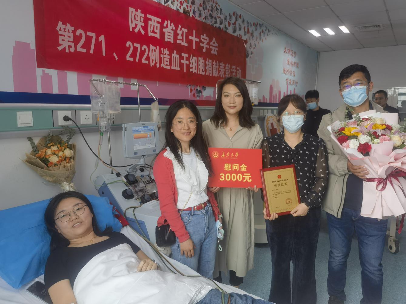 4月17日上午,我院2020级市政工程专业专硕3班硕士研究生刘心怡在空军军医大学唐都医院成功捐献造血干细胞,光荣地成为巴黎人娱乐城 自2003年启动“生命之光计划——造血干细胞捐献”项目以来的第50例造血干细胞捐献者,同时成为陕西省第272例、全国第14765例造血干细胞捐献者。