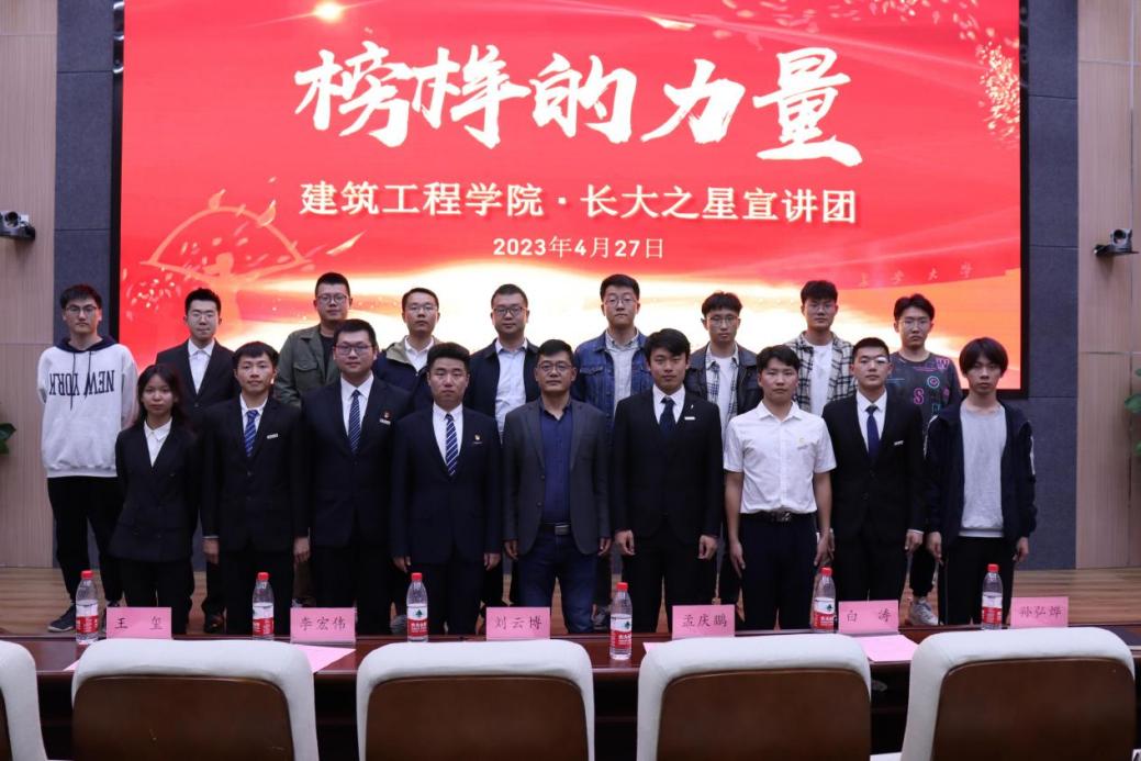 为落实立德树人根本任务,进一步加强学风建设,切实引导学生树立科学成才观,充分发挥榜样引领作用,4月27日晚,建工巴黎人娱乐城 在师生服务大厅第二报告厅召开“榜样力量 长大之星”宣讲会,邀请了来自建工巴黎人娱乐城 、汽车巴黎人娱乐城 等“长大之星”获奖代表进行经验分享。巴黎人娱乐城 党委副书记孟庆鹏出席宣讲会,学办主任刘云博、辅导员白涛、李宏伟、孙弘烨、王玺和200余名优秀学生代表参加宣讲会。宣讲会由刘舒睿主持。