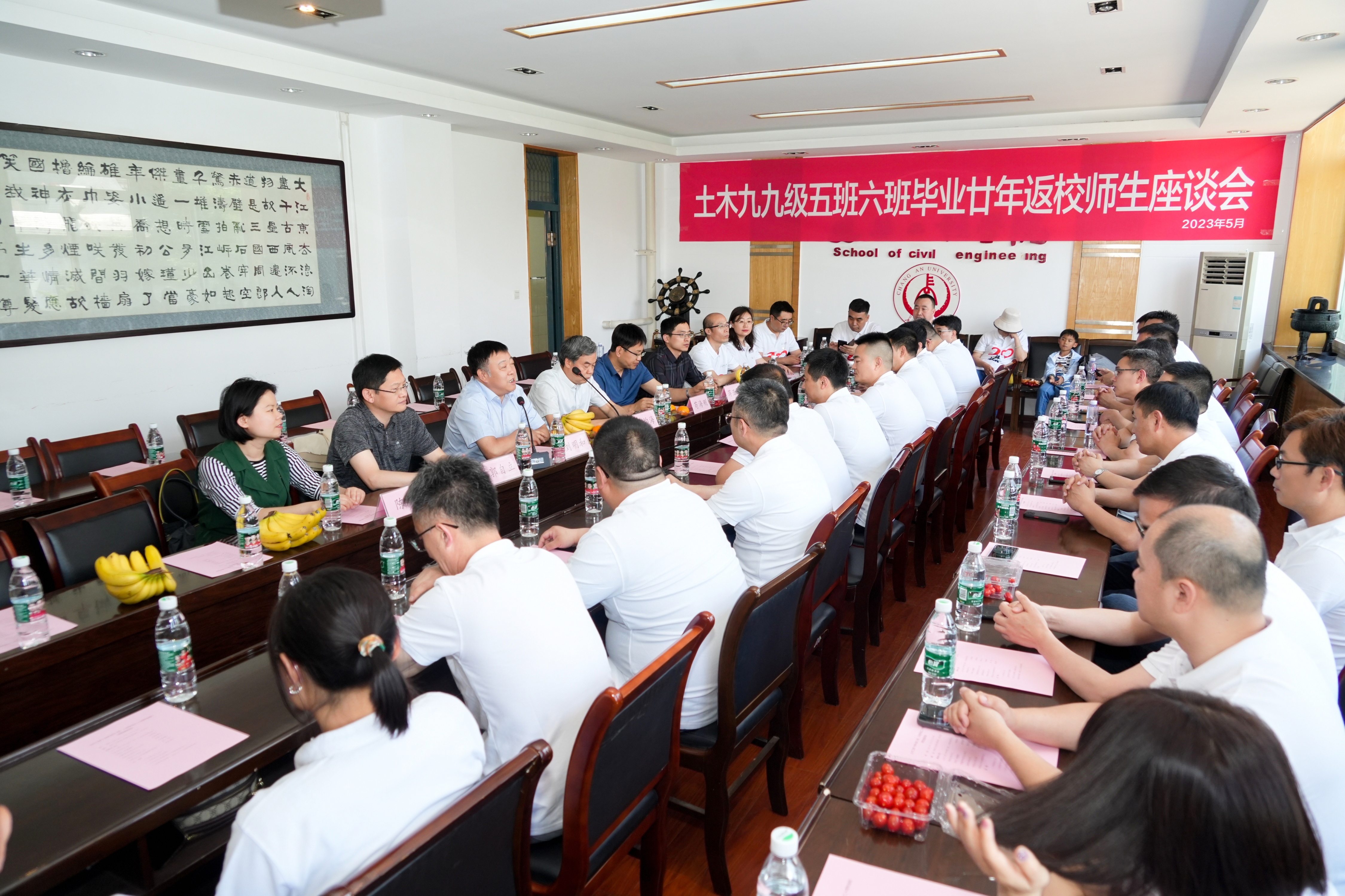 5月13日,土木工程专业1999级5班和6班30余名校友回到母校,追忆似水流年,共叙同窗情谊。当日下午,在南校区西院建工巴黎人娱乐城 第一会议室举办校友返校座谈会,巴黎人娱乐城 党委书记刘明和,二级教授赵均海,1999级班主任郭自立(附属巴黎人娱乐城 党总支书记)、苟海刚(基建处副处长),以及办公室管理人员参加座谈会。院办主任陈英主持座谈会。