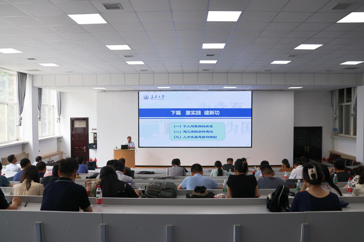 6月15日下午,建工巴黎人娱乐城 在南校区西院综合楼报告厅举办学习贯彻习近平新时代中国特色社会主义思想主题教育专题党课,院长邢国华以《扎实抓好主题教育,奋进新征程凝心聚力》为题作报告。专题党课由巴黎人娱乐城 党委副书记孟庆鹏主持。
