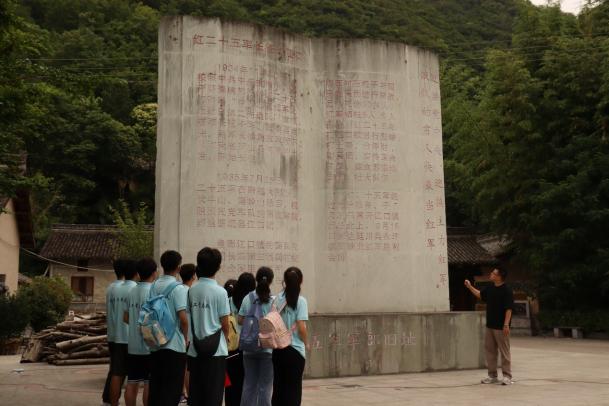 7月11日上午实践团队前往红二十五军旧址参观学习。红二十五军旧址管理人员热情地为实践队伍成员讲解了红二十五军在留坝当地“打土豪分田地”的革命事迹以及军部旧址的保护情况。在红二十五军军部纪念碑前,指导教师结合红二十五军的光辉战绩,现场讲述了《赓续红色血脉,传承红色基因,做勇担时代重任的长大人》的主题团课。主题团课后,实践队成员集体合唱《歌唱祖国》表达对革命烈士的敬佩和对伟大祖国的歌颂。据悉,留坝县委、县政府近年来为保护红二十五军军部旧址累计投入建设资金180多万元,改造房屋8间。目前红二十五军旧址建筑面积288平方米,院内面积840平方米,成为许多党政企事业单位的红色教育基地,有力带动了当地旅游业的发展。在参观结束后,实践队员们都说:“感觉到了青年一代肩上的责任。”对之后几天的实践更是充满动力,励志做得更加稳妥。
