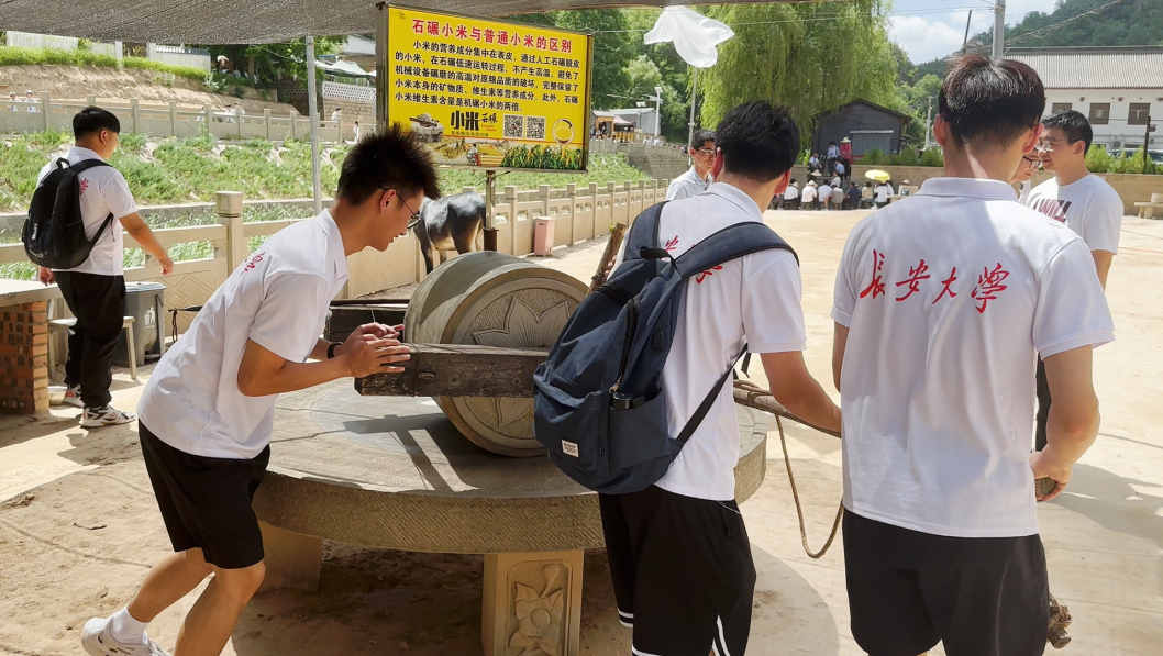 实践队员在梁家河村体验推石磨