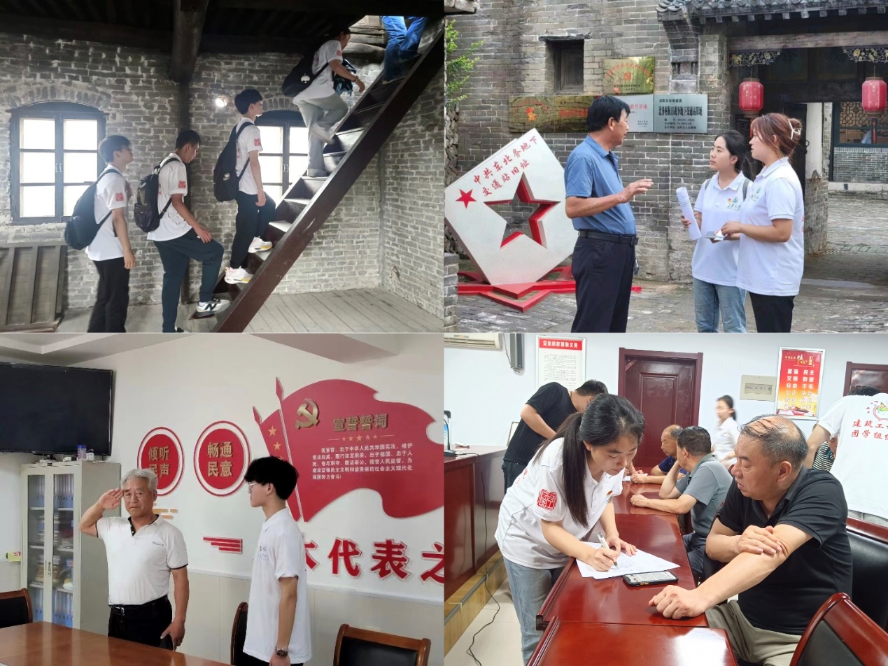 实践队员前往东北务村地下交通站遗址开展讲授爱国主题教育团课,传播红色故事,弘扬革命精神。实践队员向东北务村居民发放了关于乡村振兴的调查问卷并采访了当地的村干部及村民,了解乡村振兴战略在当地的实施情况。