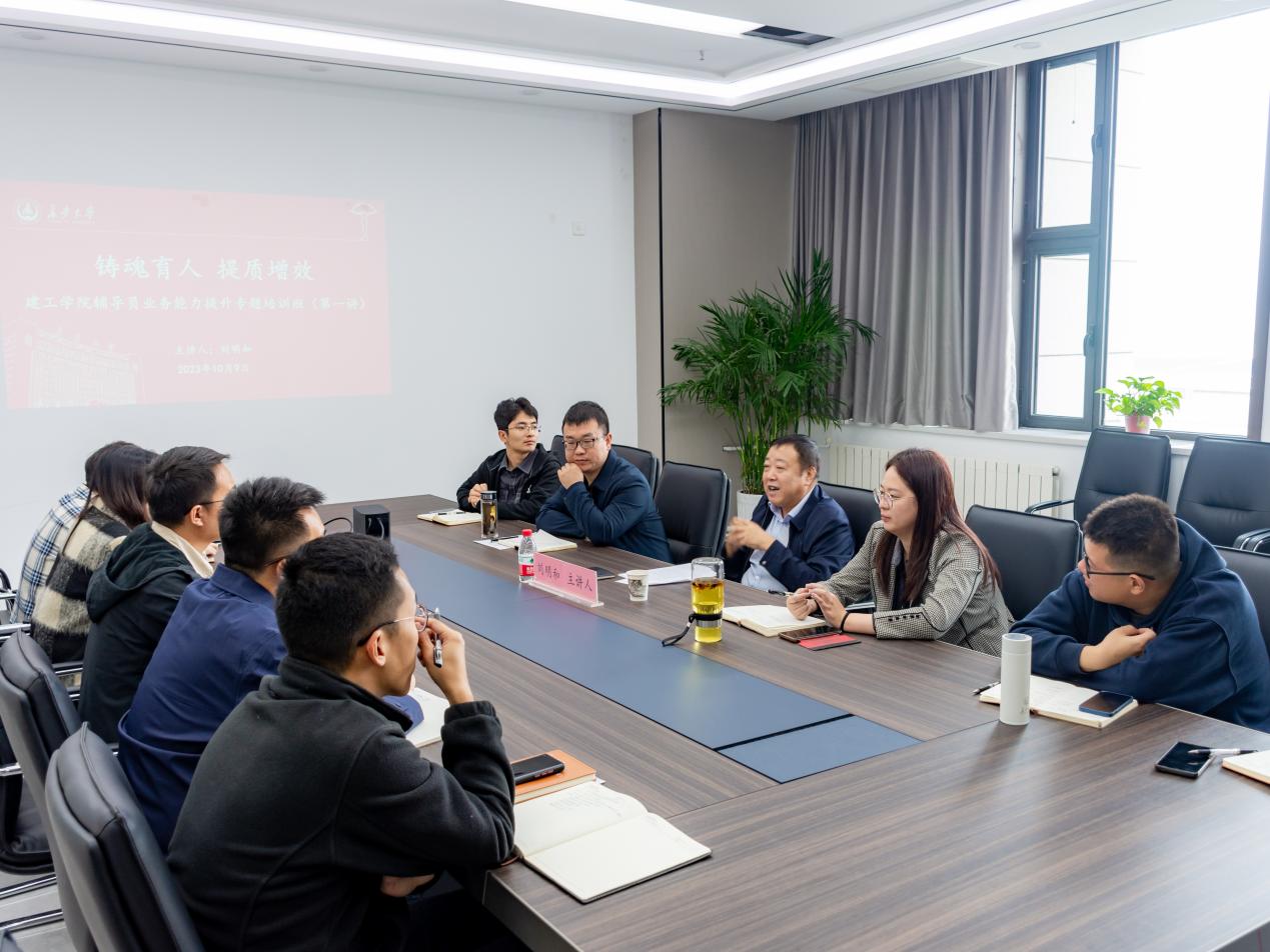 10月9日上午,建工巴黎人娱乐城 在北校区建筑材料实验中心E608会议室举办“铸魂育人,提质增效”辅导员业务能力提升专题培训班第一讲,巴黎人娱乐城 党委书记刘明和担任主讲,巴黎人娱乐城 全体辅导员参加培训。培训由学生工作办公室主任刘云博主持。
