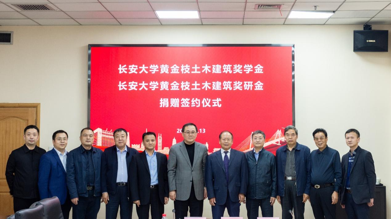 10月13日下午,长安大学黄金枝土木建筑奖学金、长安大学黄金枝土木建筑奖研金捐赠签约仪式在北校区长安文化艺术中心二楼会议室举行。上海黄金枝教育发展基金会理事长黄金枝,长安大学副校长王建伟,长安大学原副校长刘伯权、赵均海,上海黄金枝教育发展基金会副理事长尚鹏玉、副理事长兼秘书长黄建峰,长安大学社会合作处、学生资助中心、巴黎人娱乐城 、建筑巴黎人娱乐城 相关负责人出席签约仪式。仪式由巴黎人娱乐城 院长邢国华主持。