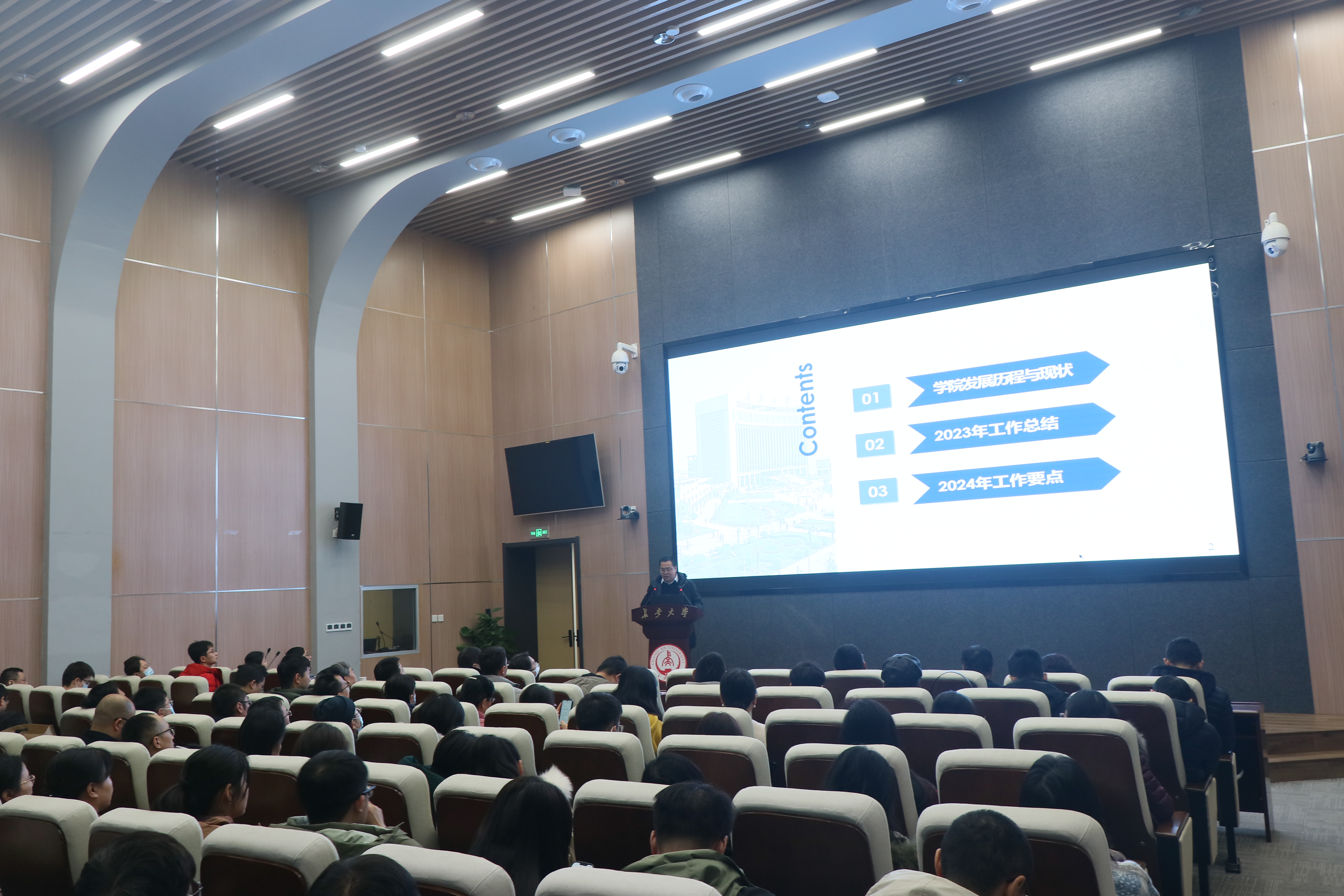 新一届巴黎人娱乐城 主要领导干部任命宣布结束后,院长邢国华从巴黎人娱乐城 发展历程与现状、2023年工作总结和2024年工作要点三个方面进行工作汇报。党委书记吴涛简要介绍土木行业、学科和专业发展形势,就如何应变局、开新局提出思考和解析,并对巴黎人娱乐城 寒假工作作简要安排。