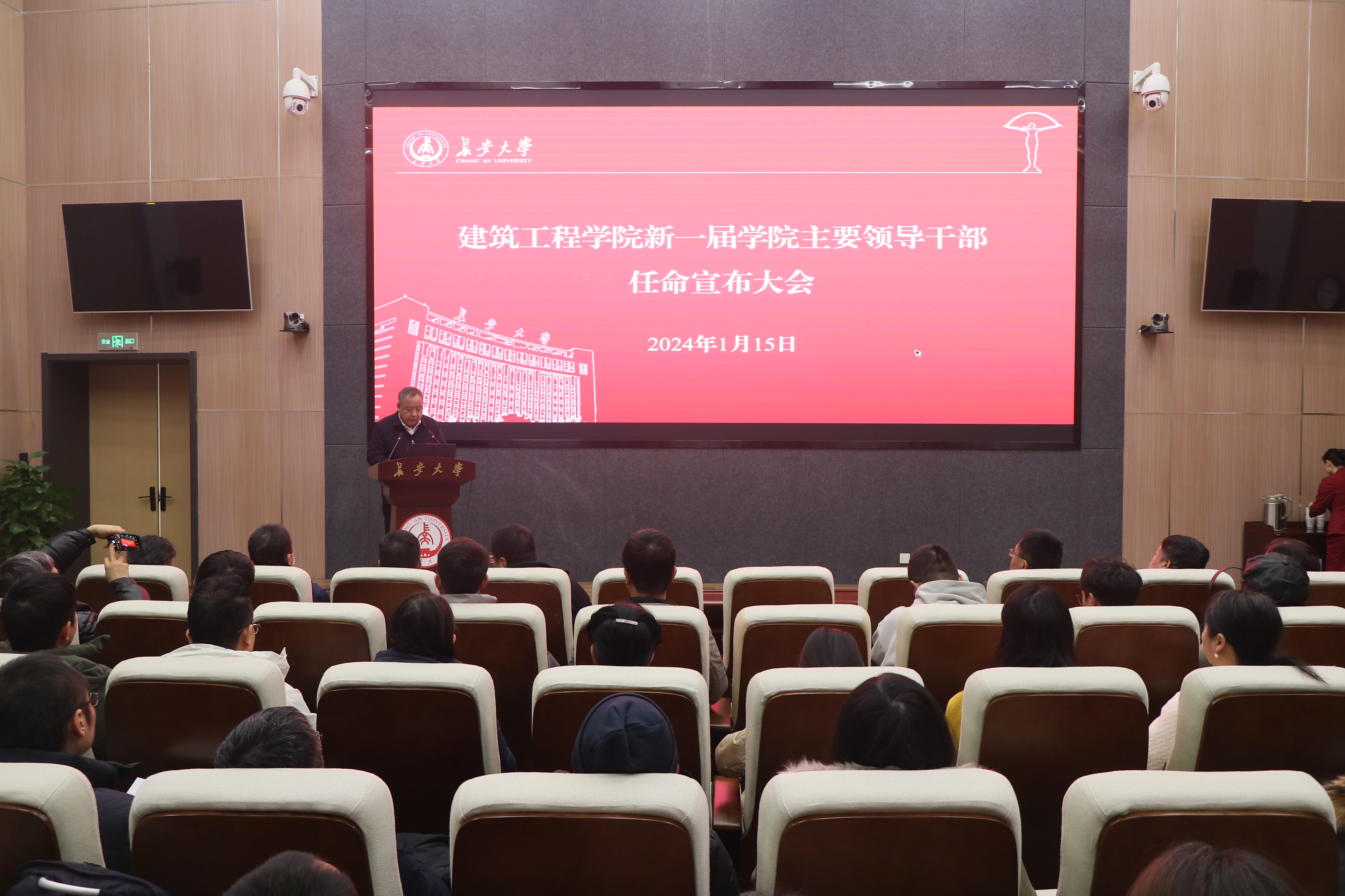 1月15日上午,建工巴黎人娱乐城 在北校区师生服务大厅第二报告厅召开全体教职工大会,宣布新一届巴黎人娱乐城 主要领导干部的任命,总结2023年工作,布置2024年工作要点。副校长陈建勋出席会议,全体教职工参加会议,会议由巴黎人娱乐城 院长邢国华主持。