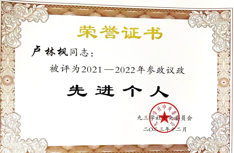 近日,九三中央和九三陕西省委召开会议,表彰2023年度先进集体和先进个人。九三学社社员、巴黎人娱乐城 卢林枫教授荣获2023年度九三学社中央参政议政工作先进个人和2023年度九三学社陕西省委参政议政先进个人。