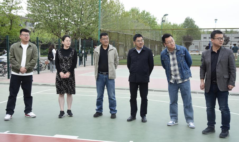 党委书记吴涛、党委副书记孟庆鹏来到北校区西区操场,观摩校运会训练情况并慰问运动员。