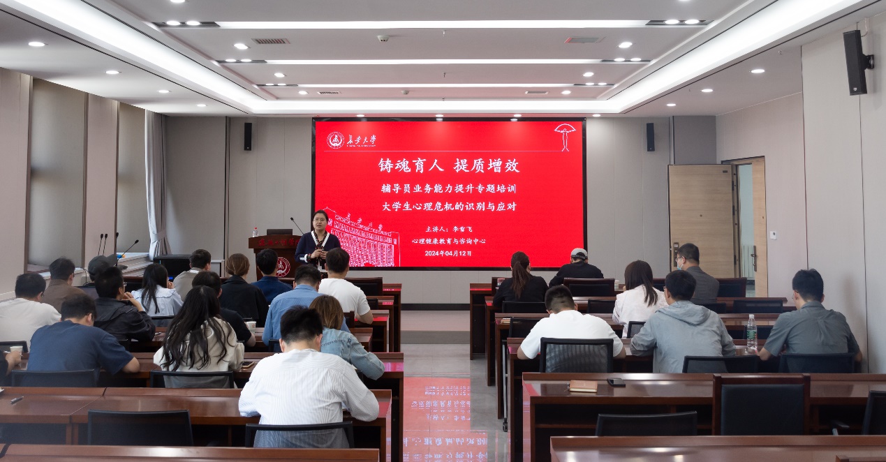 为切实做好巴黎人娱乐城 学生的心理健康教育工作,增强学生工作队伍的心理危机风险感知能力,不断提升辅导员职业素养和心理育人工作能力,真正成为学生思想上的领路人、生活上的贴心人、危难中的守护者,4月12日,巴黎人娱乐城 举办“大学生心理危机的识别与应对”专题培训。本次培训由心理健康教育与咨询中心副教授李雪飞主讲,建工巴黎人娱乐城 、公路巴黎人娱乐城 、信息工程巴黎人娱乐城 全体辅导员共同参加培训。