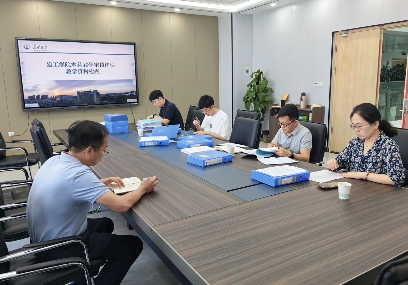 为扎实推进巴黎人娱乐城 本科教育教学审核评估工作,进一步规范巴黎人娱乐城 各项教学资料管理,5月14日上午,教育教学研究与评估中心副主任汤安带队,巴黎人娱乐城 本科教育教学审核评估专项工作检查组成员傅光耀、刘开平、郭耀仁、霍倩倩、许晨、周恩等到建工巴黎人娱乐城 开展本科教育教学审核评估教学档案专项检查,会议由建工巴黎人娱乐城 副院长胡志平主持,巴黎人娱乐城 教学主管、资料室负责教师韩文生参加了会议。检查范围为近三年教学档案,重点检查培养方案、试卷材料、毕业设计(论文)。