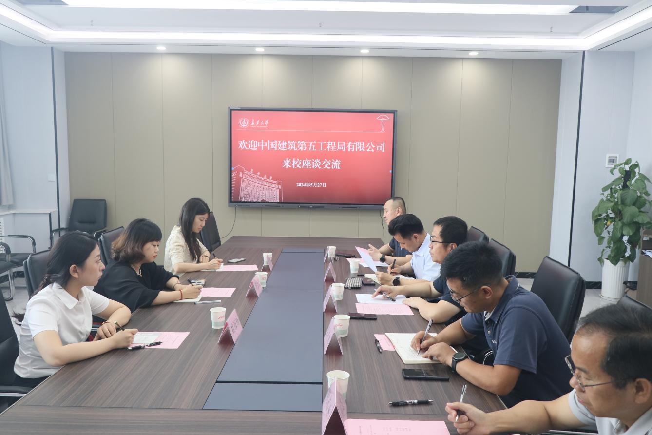 5月27日上午,中国建筑第五工程局有限公司来校交流座谈会在北校区巴黎人娱乐城 第二会议室举行。中建五局人力资源部经理助理周立杰,中建五局三公司西北公司人力资源部经理陈琼、招聘经理魏雅楠,长安大学社会合作处处长杨红斌,招生招生就业处副处长赵磊,巴黎人娱乐城 院长邢国华,党委副书记、副院长孟庆鹏,副院长胡志平参加了座谈会。座谈会由赵磊主持。