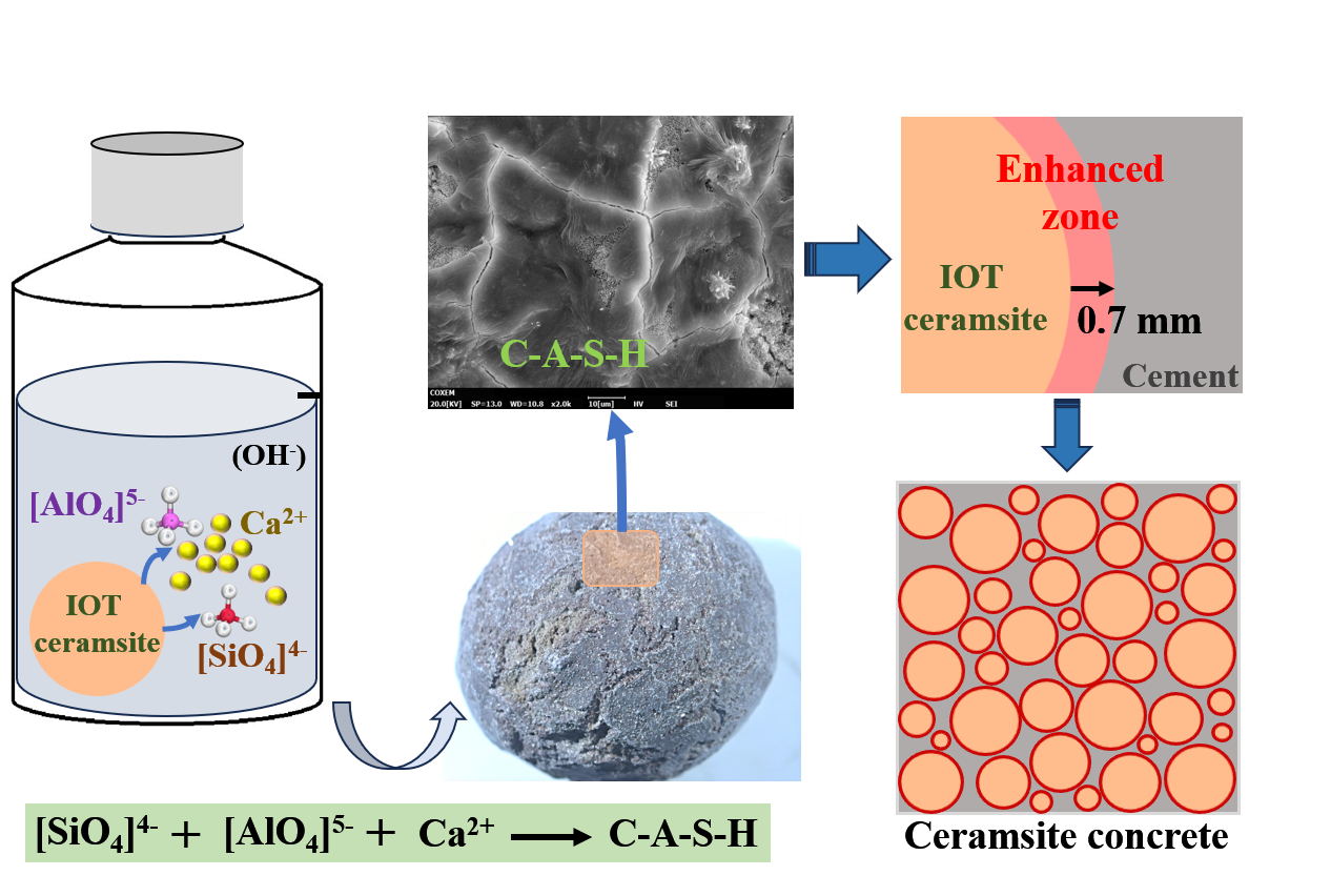 近日,巴黎人娱乐城 博士生王攀奇在导师李晓光教授的指导下,以第一作者身份在建筑材料领域国际顶级期刊《Cement and Concrete Composites》(中科院1区TOP,IF=10.8)上发表论文“Formation of calcium-aluminum-silicate-hydrate (C-A-S-H) in iron ore tailings ceramsite and its influence on cement hydration degree”(水化硅铝酸钙凝胶(C-A-S-H) 在铁尾矿陶粒表面的形成及其对水泥水化程度的影响)。论文通信作者为巴黎人娱乐城 李晓光教授,论文第一署名单位和通信作者单位均为长安大学。该项研究由国家自然科学基金项目(52272015)资助。