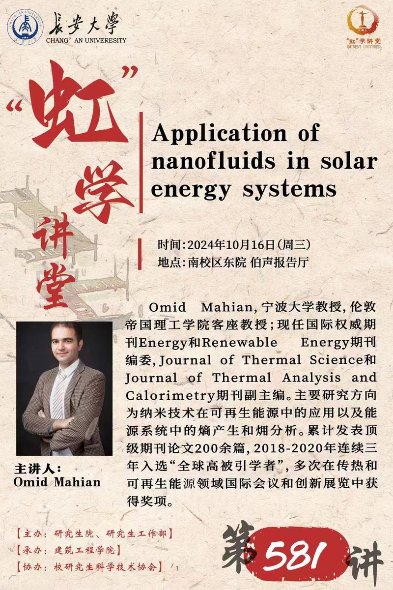 报告题目:Application of nanofluids in solar energy systems