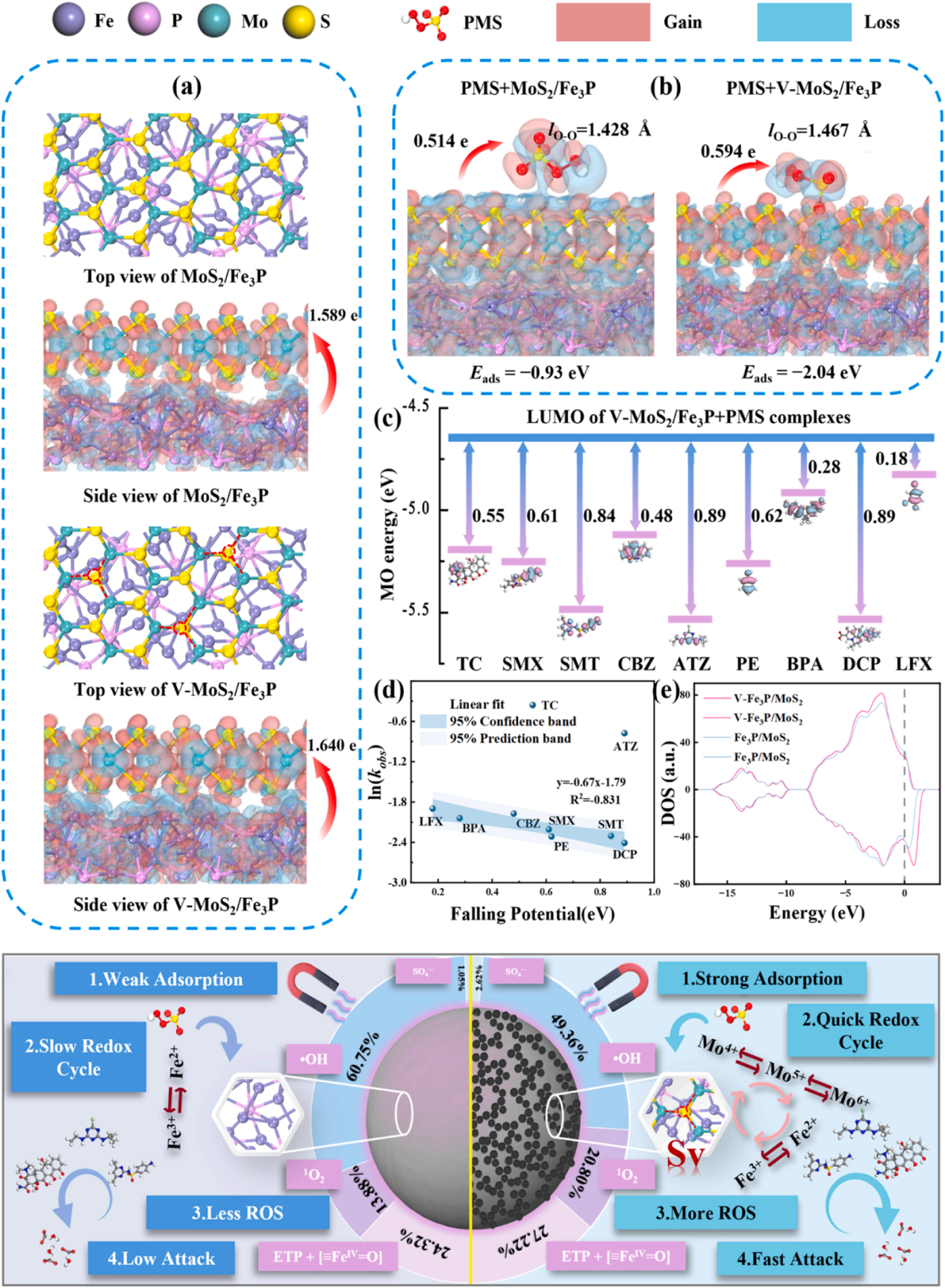 上述研究工作系统完善了不同Svs含量的MoS2/Fe3P催化剂对类芬顿氧化体系中PMS的活性调节性能及实现新污染物高效降解的核心催化机制研究。这项工作突出了空位工程在为实际环境应用设计有效催化剂方面具有强大的潜力,并为可持续的废水处理提供了有前景的解决方案。