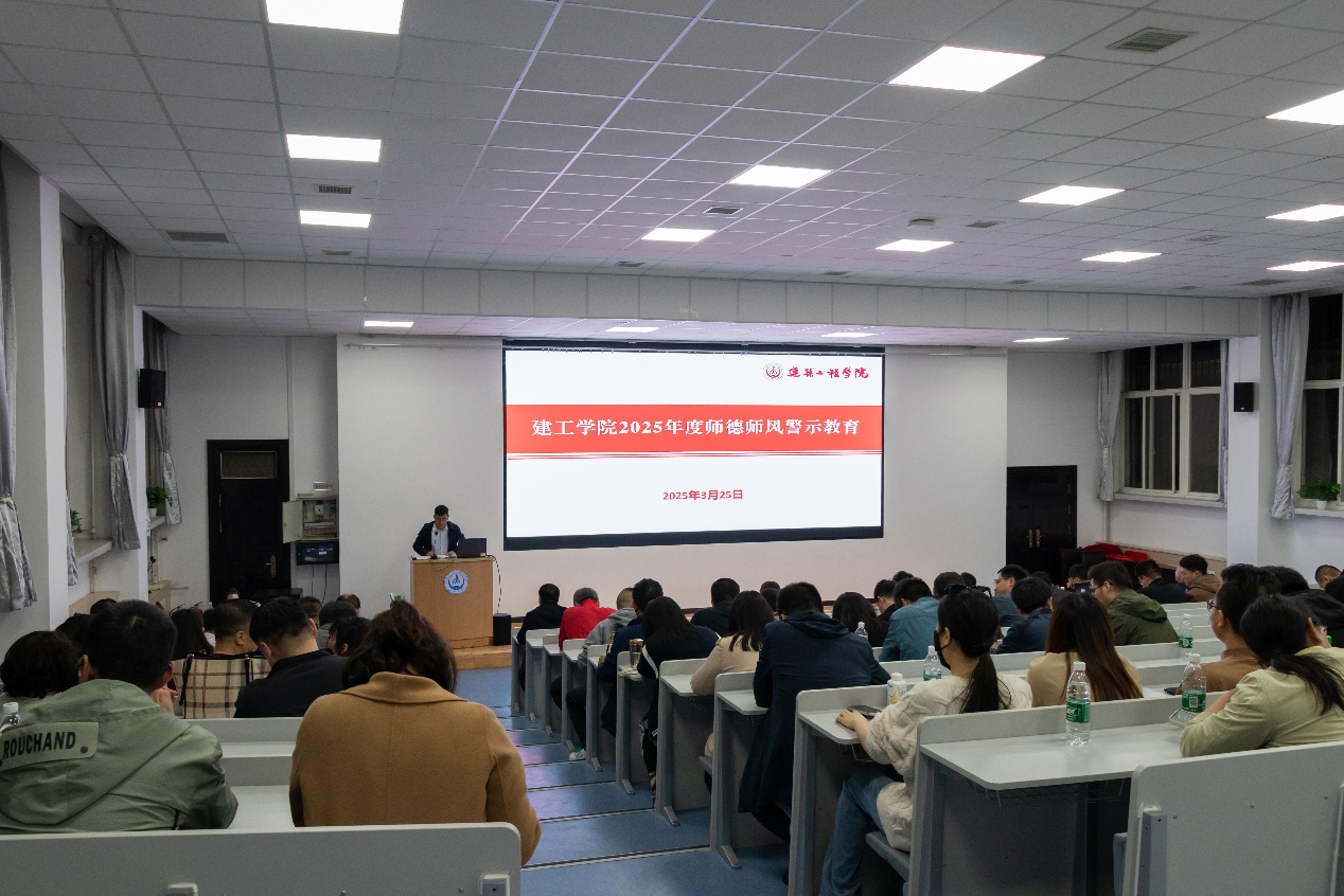 孟庆鹏在会议上组织全院教职工深入学习相关文件精神,并对高校违反中央八项规定及其实施细则精神典型案例和近年来教育部通报的部分师德失范典型案例进行通报剖析。他希望全院教职工要切实以案为鉴,深刻汲取教训知敬畏、存戒惧、守底线,严以修身、防微杜渐,自觉筑牢拒腐防变的作风“防火墙”。他要求全院教职工在明确师德底线的同时,也要加强正面引导,深刻领会教育家精神,系统学习领会习近平总书记关于教师队伍建设的重要讲话和重要指示批示精神,强化思想引领、规范从教行为,以德立身、以德立学、以德施教,以模范行为影响和带动学生,做学生为学、为事、为人的大先生,为加快教育现代化、建设教育强国贡献智慧和力量