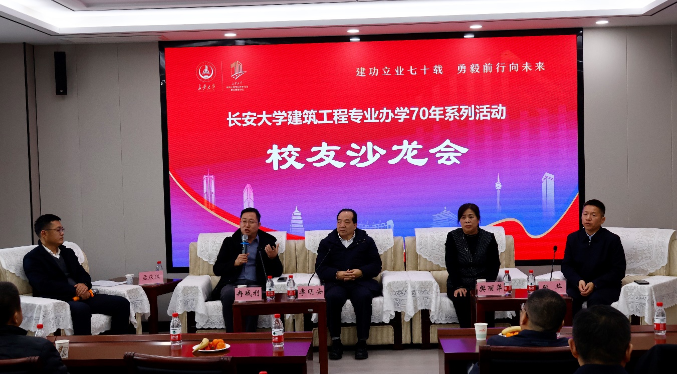 12月29日下午,长安大学建筑工程专业办学70年系列活动之校友沙龙会在致远大厦巴黎人娱乐城 第一会议室举行,主讲的4位嘉宾有中国土木工程学会秘书长李明安、西北综合勘察设计研究院院长助理樊丽萍、陕西建工铁建工程有限公司党委书记董事长张华、西安城市更新投资有限公司董事长冉战利,出席沙龙会的还有巴黎人娱乐城 院长邢国华教授、党委副书记孟庆鹏、副院长李晓光教授,近50名校友和在校师生参加沙龙会,校友沙龙会由巴黎人娱乐城 党委副书记孟庆鹏主持。