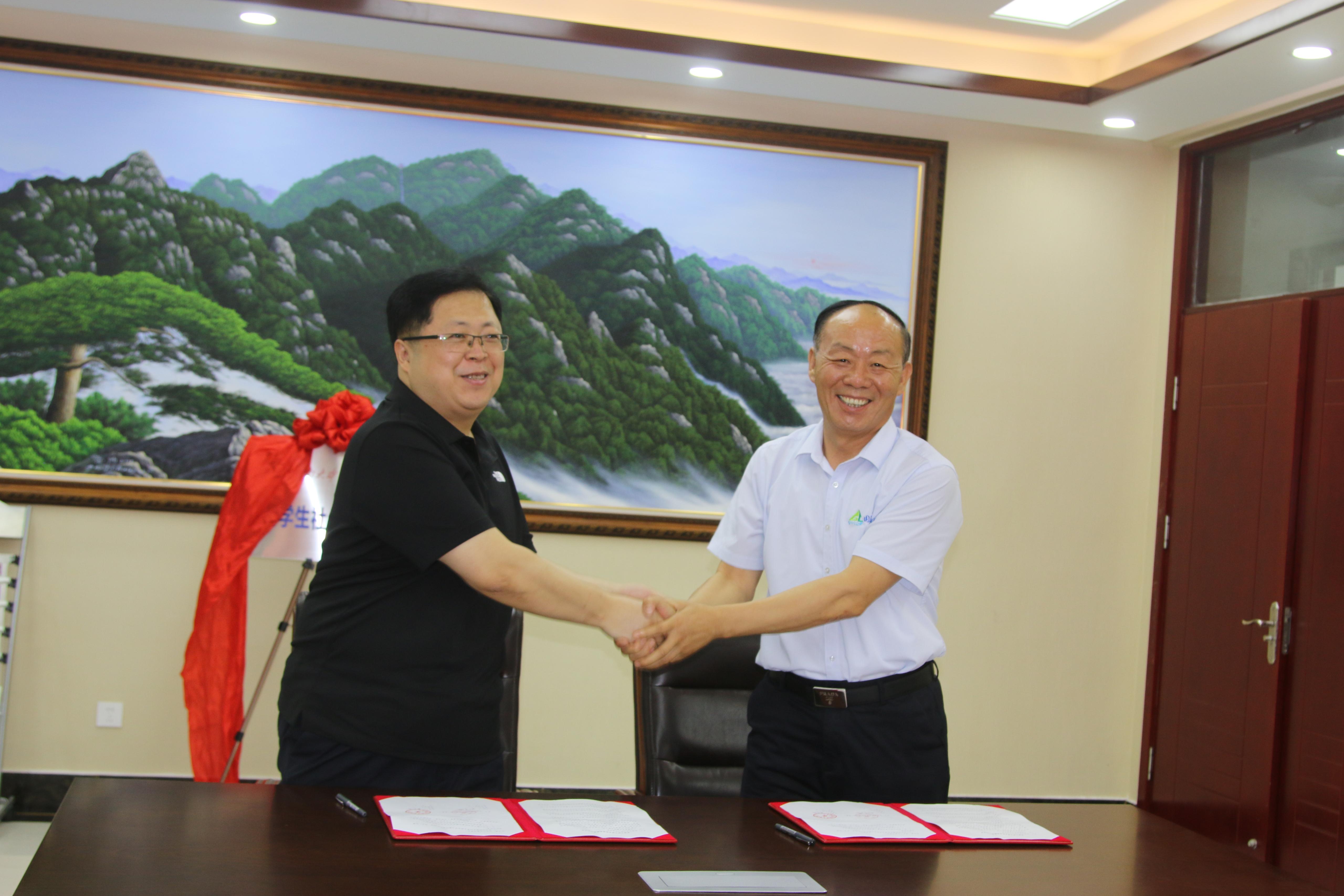 王仲鹏副院长与马立新董事长签署了共建大学生社会实践基地协议,王义书记、李晓林副部长为基地揭牌。