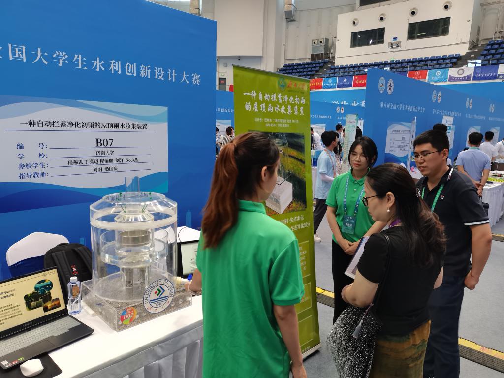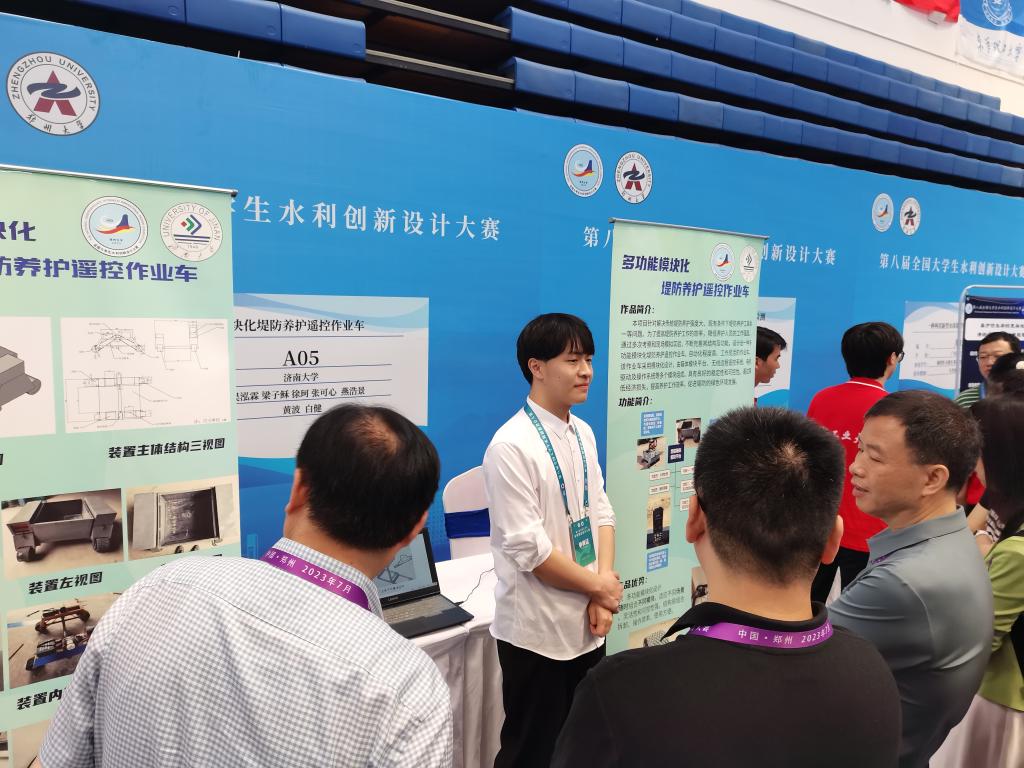 代表队通过作品演示、分组答辩、答辩复赛等环节进行展示,经大赛评审委员会评选,由刘阳、桑国庆老师指导的作品《一种自动拦蓄净化初雨的屋顶雨水收集装置》和由黄波、白健老师指导的作品《多功能模块化堤防养护遥控作业车》获得一等奖,由任小花老师指导的作品《农村生活污水分散式处理与庭院式生态污水处理单元一体化创新设计》获得二等奖。