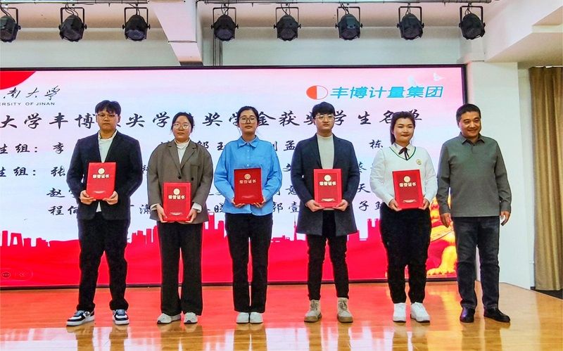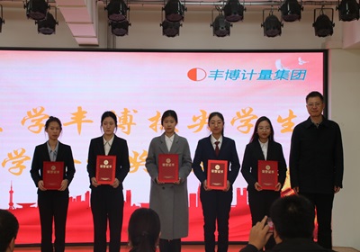 丰博拔尖学生奖学金颁奖仪式举行,91届校友、丰博计量集团董事长杨德柱应邀出席颁奖仪式,丰博智能水联网公司市场部总监朱琛燕、集团人力资源部经理路伟,巴黎人娱乐城