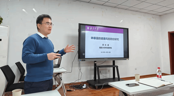 环境介质和食品中砷(As)的人体暴露是一个全球性的问题。历红波副教授以“砷暴露的健康风险防控研究”为题,介绍了营养元素、益生元和多酚类物质对砷吸收和毒性影响。报告内容综合运用高通量测序技术、液质联用、代谢组解析、同步辐射吸收光谱等前沿技术从下调肠道砷吸收通道、促进肠道内砷甲基化和促进组织内砷甲基化三个不同角度,深入解析了降低砷暴露健康危害的机理。报告内容深入浅出,通俗易懂,引起了在场师生的极大关注。报告结束后,与会师生们纷纷踊跃提问,展开了热烈的学术讨论与交流。大家对历红波副教授的研究成果表示赞赏,并认为这些研究将有助于提高人们对砷健康风险的认知,为砷暴露的防控提供有力的科学依据。
