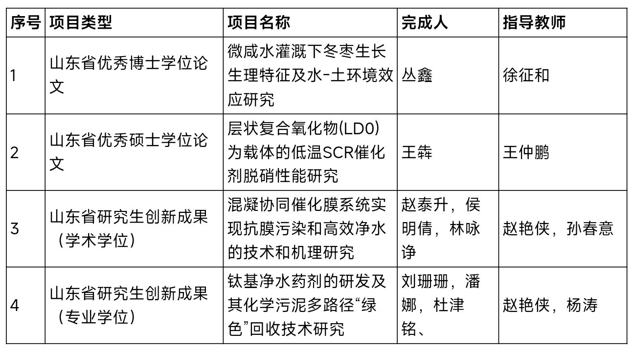 获批山东省优秀博士学位论文1篇(指导教师:徐征和),山东省优秀硕士学位论文1篇(指导教师:王仲鹏),山东省研究生创新成果(学术学位)1项(指导教师:赵艳侠,孙春意),山东省研究生创新成果(专业学位)1项(指导教师:赵艳侠,杨涛);课程和教学案例建设方面,获批山东省研究生优质课程1项(负责人:潘维艳),山东省研究生优质专业学位教学案例库1项(负责人:何芳);教育教学改革方面,获批山东省研究生教育教学改革研究项目1项(负责人:刘玉玉)。相关成果为助力巴黎人娱乐城