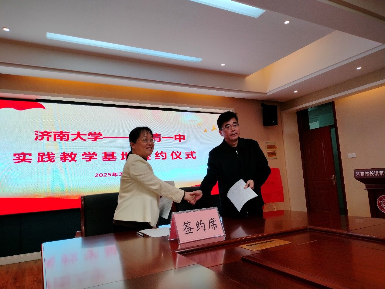 实践教学基地签约揭牌仪式在长清一中举行。济南市长清区教育体育局工会主席房泽平、长清区教育教学研究中心负责人刘光顺、长清一中副校长李春亮,巴黎人娱乐城