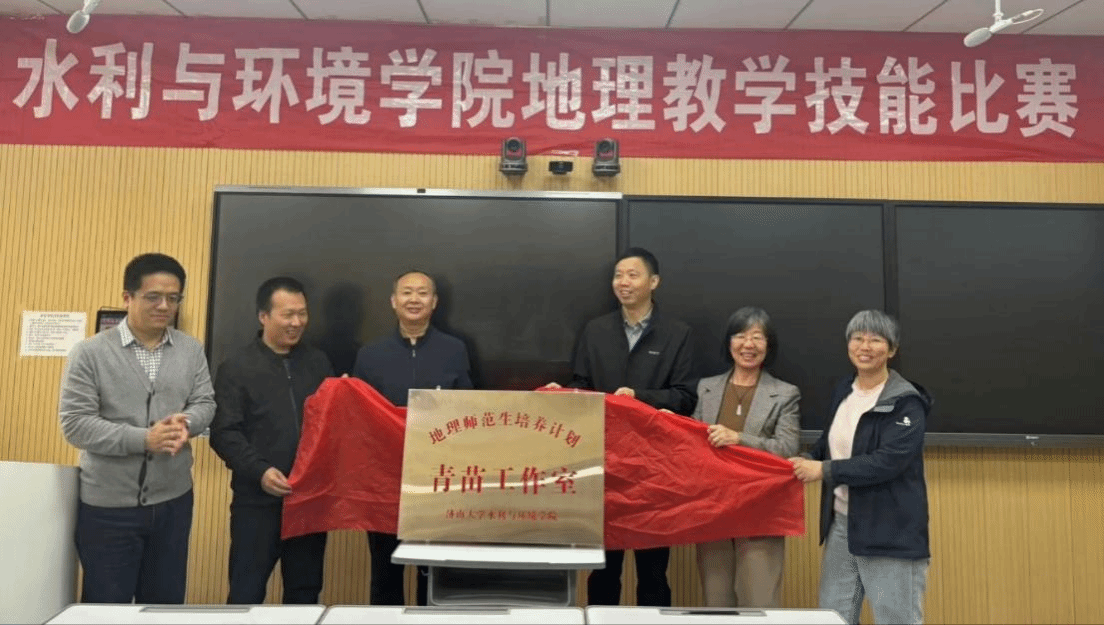 "青苗工作室"揭牌仪式。青苗工作室将作为地理师范生教学能力提升的重要平台,通过名师指导、教学研讨、技能培训等方式,全方位提升同学们的教学素养,助力师范生成长。