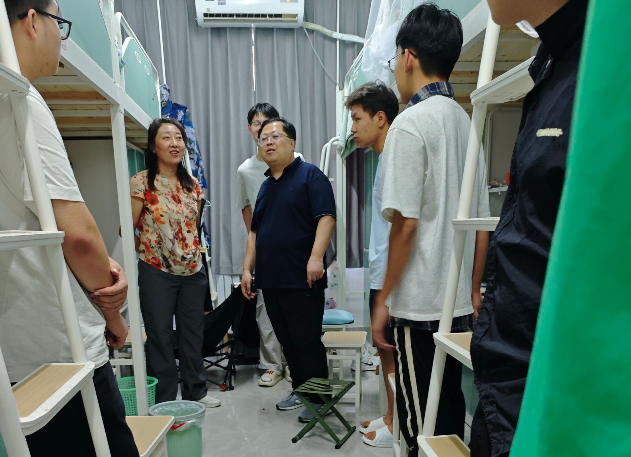 领导班子走访新生宿舍,了解新生适应情况,提醒新生注意人身安全、财产安全,提升反诈骗意识,鼓励大家团结同学,积极参与校园文化活动。