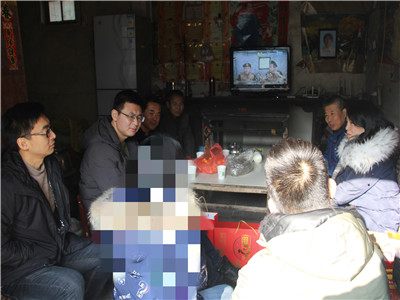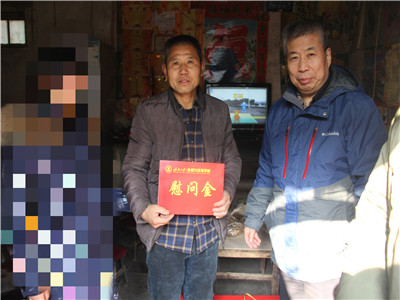 将慰问金递到张同学父亲手中。在交谈中了解到一年多来张同学的家中在政府的帮助下逐渐有所改善,处在叛逆期的弟弟也变得懂事。