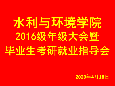 党委副书记副院长张良红、分管研究生工作副院长王仲鹏、水利系系主任桑国庆、环境系系主任赵春辉、地理系系主任宋鹏、毕业班全体班主任、毕业年级辅导员白健及2016级全体本科毕业生参加此次会议,会议由白健主持。