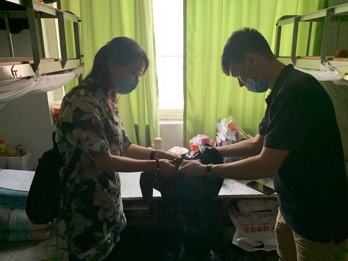 在清洁整理的过程中,老师和同学们积极投入,分工合作,配合密切。首先,检查每个宿舍中潜在的安全隐患,进一步检查学生宿舍内的桌椅、水电、空调以及墙壁等设备设施情况。认真把学生放假时没有及时扔掉的垃圾全部打扫干净、凌乱的床铺整洁一新、书桌物品摆放井然有序,小花小草也重新浇了水。为有需要的同学提供了晒被子、清垃圾、护绿植、寄快递等帮助。通过大家共同努力,宿舍内数月蒙上的灰尘也被打扫得干干净净,公寓环境卫生干净整洁,校容校貌焕然一新。贴心的服务、周到的考虑,让学生惊呼感到了万般“宠爱”。