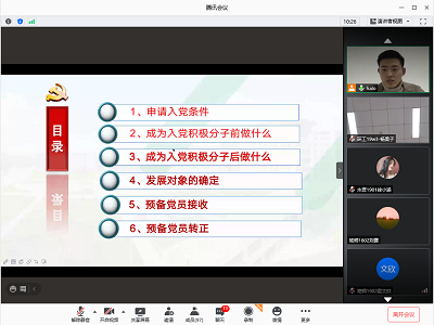 辅导员及研究生党支部书记张通担任主讲。本次专题培训通过腾讯会议线上进行。