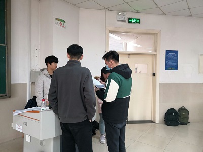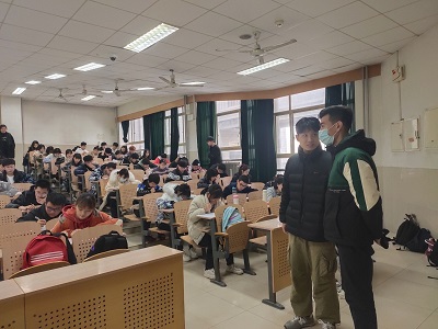 自律会指导老师艾克拜尔巡考,学生组织各部门部长监考。