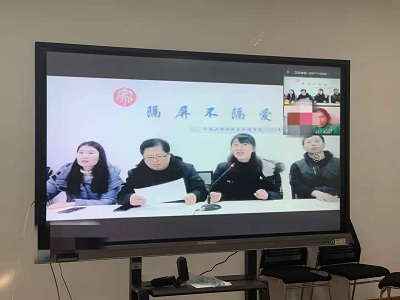 党委副书记张良红、副院长王仲鹏、副院长庞桂斌、2017级辅导员尹鑫组成的家访活动工作小组通过网络与安同学连线进行线上家访活动,在严冬时节为他送去温暖。