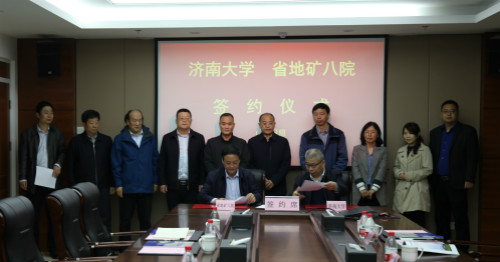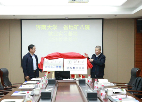 与山东省第八地质矿产勘查院共建毕业生就业实习基地和本科实践教学基地签约揭牌仪式在山东省第八地质矿产勘查院举行。山东省第八地质矿产勘查院党委书记、院长李星传,党委副书记张辉,副院长马登贤、朱伟,巴黎人娱乐城