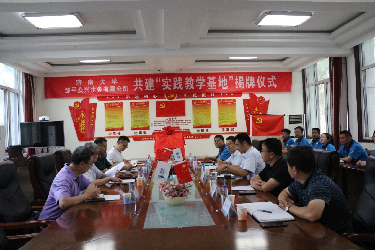 院长徐征和,教授杨丽原,办公室主任曲华明,系主任赵春辉及水发众兴集团副总经理丁邦宏、水务事业部总经理刘辉、副总经理王介重及邹平众兴水务有限公司相关负责同志参加揭牌仪式。会议由水发众兴集团副总经理丁邦宏主持。