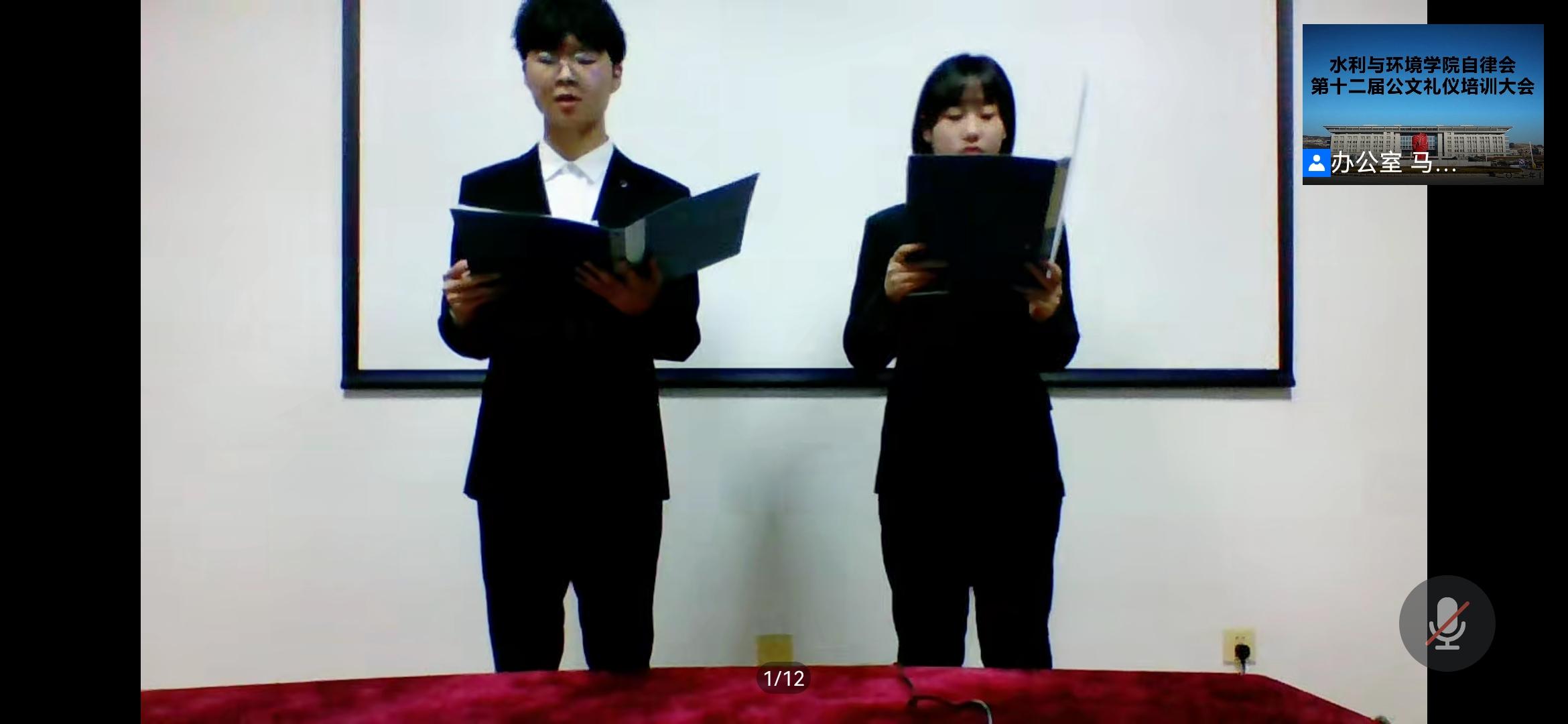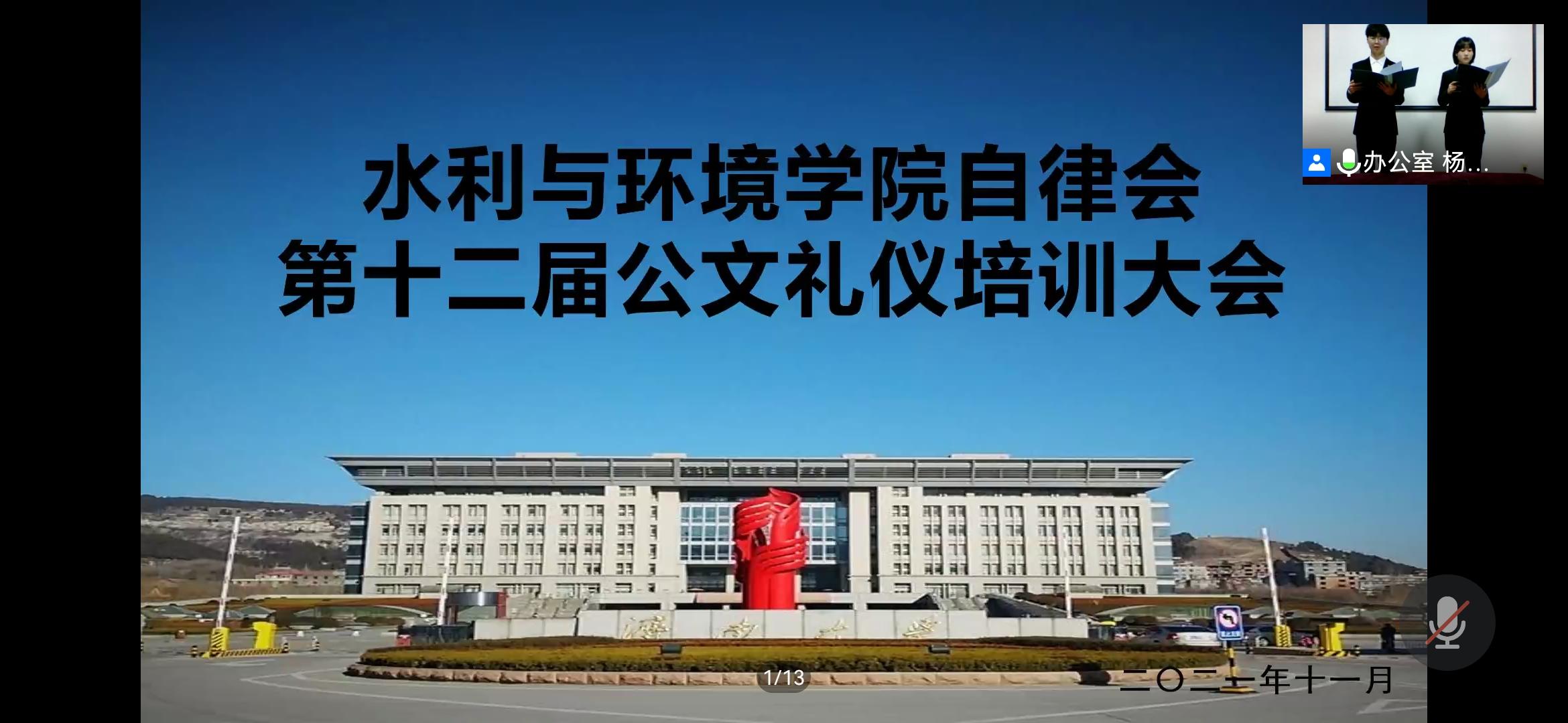 自律会于11月26日晚七点半以线上会议的形式举办公文礼仪培训活动。由李心雨、蔡桥主持本次活动,自律会办公室邢琳婧、自律会宣传部孟卓群、吴鑫瑶,自律会主持礼仪代表朱嘉仪作为嘉宾以及自律会全体成员参加此次培训会。