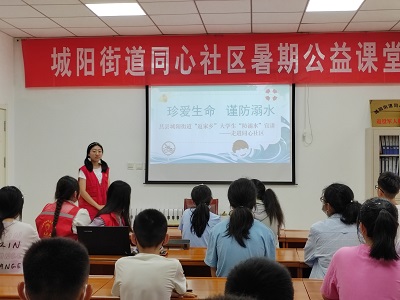 为进一步加强未成年人水上安全教育,提高安全防范能力,避免溺水事故的发生,使未成年人牢固树立防溺水安全意识,掌握防溺水知识技能,实践团队于7月27日上午9:00走进城阳街道同心社区,为孩子们带来了一场形式多样、内容丰富的防溺水知识宣讲活动。