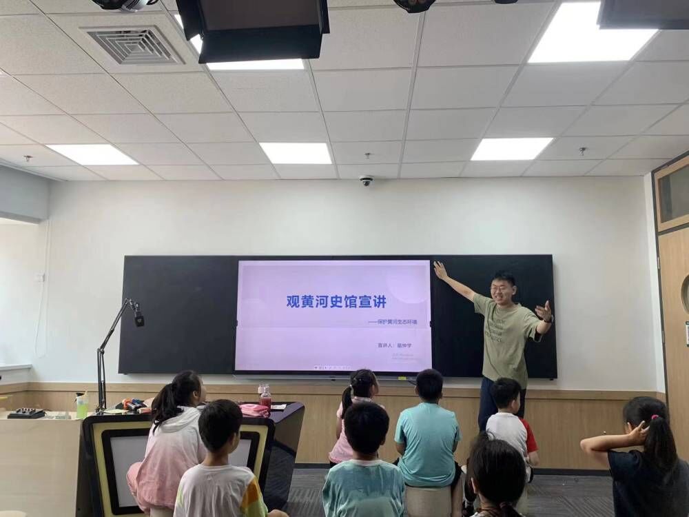 “助力黄河设施保护,共建黄河钢铁长城”团队成员宿仲宇前往济南市新东方教育机构,面向小学与高中的学生展开黄河生态保护宣讲。