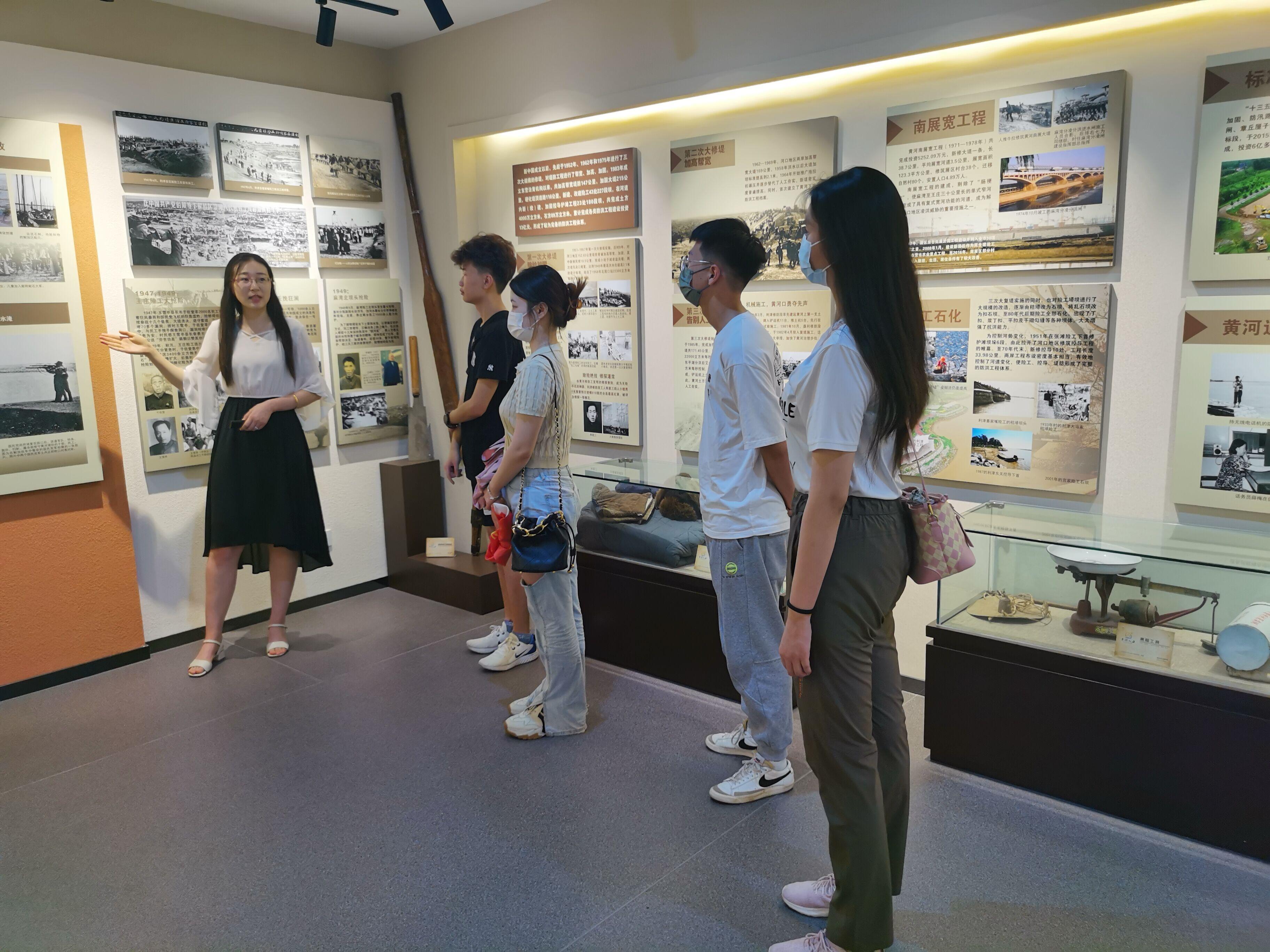 4日上午,团队成员在管理局工作人员带领下,对局内的黄河展览室进行了参观学习。通过工作人员深入浅出的讲解,团队成员了解到黄河历史上的决堤以及改道情况,并通过保留下来的黄河人抗黄、抗险的照片感受到了革命先辈的艰辛与大无畏的革命牺牲精神。随后,团队成员通过分析学习黄河河道未来规划图,对未来的黄水东调、调水调沙等战略有了初步了解,明确认识到黄河对于国家的战略性意义和对于人民幸福生活的重要性。最后,团队成员观看学习了习近平总书记在主持召开深入推动黄河流域生态保护的高质量发展座谈会上的讲话,感受到国家对黄河问题的重视,更加坚定了为黄河建设发展而奋斗的的决心。