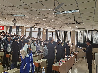 本次开班仪式主要分为四个部分:第一部分,院学生会团建部干事领誓重温入团誓词。第二部分,《争做五个模范,践行五个带头》专题学习。由“青马工程”第十二期大学生骨干培训班五支部团支部书记刘泽宇带领全体青马学员重温习近平总书记对青年的期望,并引用习近平总书记对青年的寄语与在场的学员共勉。刘泽宇强调学员们当牢记习近平总书记嘱托,砥砺奋发、勇毅前进,以青春之我建设青春之中国。一心一意跟党走,牢记党的教诲,锻造绝对忠诚的政治品格。第三部分,《青春心向党,奋斗新华章》党史宣讲。由“青马工程”第十二期大学生骨干培训班学员王玉媛与学员们共同回顾党的百年峥嵘岁月,百年党史的“壮阔画卷”上有党奋斗不息的艰辛历程,也有前辈们凝心聚力创造的伟大成就。王玉媛提醒学员们,沐浴于新时代的光辉之中,青年应该学好党史,吸取前人的经验教训,了解党的艰辛历程,让爱党之风在心中荡漾。同时带领学员们许下“请党放心,强国有我”青春誓言。第四部分,《锤炼过硬本领,勇担时代使命》专题学习。由院学生会主席团成员吴泓霖领学,他提出青年的先锋意识,鼓励学员们接续追梦奋进的姿态,保持改革创新的锐气,锻炼实干担当的本领,争做有志气有骨气有底气的时代新人。