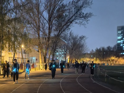 结合“推崇全民健身运动,促进健康中国建设”的社会热点于3月25日在北苑操场开展了以“节水节电,低碳有我”为主题的“熄灯一小时”荧光夜跑活动。